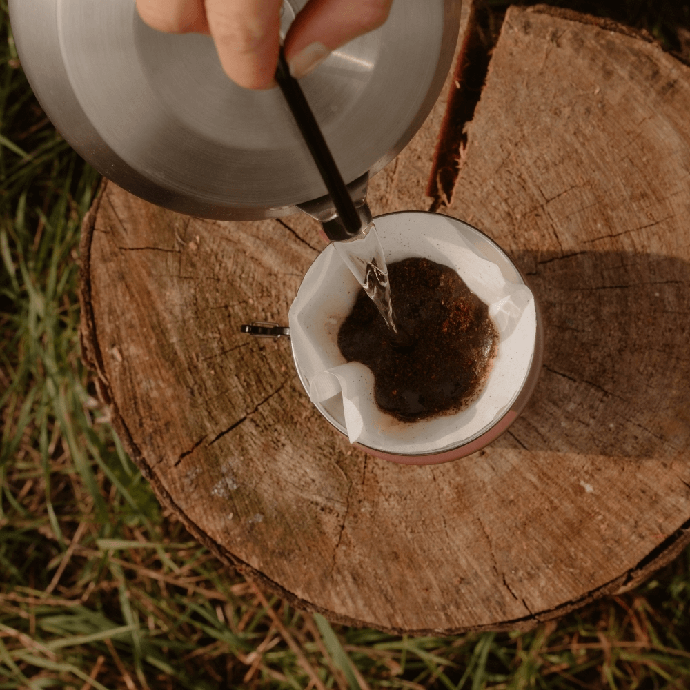 Mahl dir deine Kaffeebohnen mit der Terra oder Terra Sigma Mühle frisch vor Ort, möglichst im mittelfeinen Mahlgrad. Setz dann den Papierfilter oder ein wiederverwendbares Tuch in den Sierra ein, fülle etwa 15–18 g Kaffee hinein und koche dein Wasser im Geysir Wasserkessel auf. Lass es kurz abkühlen, sodass es nicht mehr sprudelnd kocht (ca. 92–94 °C), und gieße langsam in kreisenden Bewegungen auf. Warte zwischen den Aufgüssen einige Sekunden, bis das Wasser durchgelaufen ist. Nach insgesamt 2–3 Minuten ist dein Kaffee fertig – klar, aromatisch und perfekt für dein nächstes Outdoor-Abenteuer.