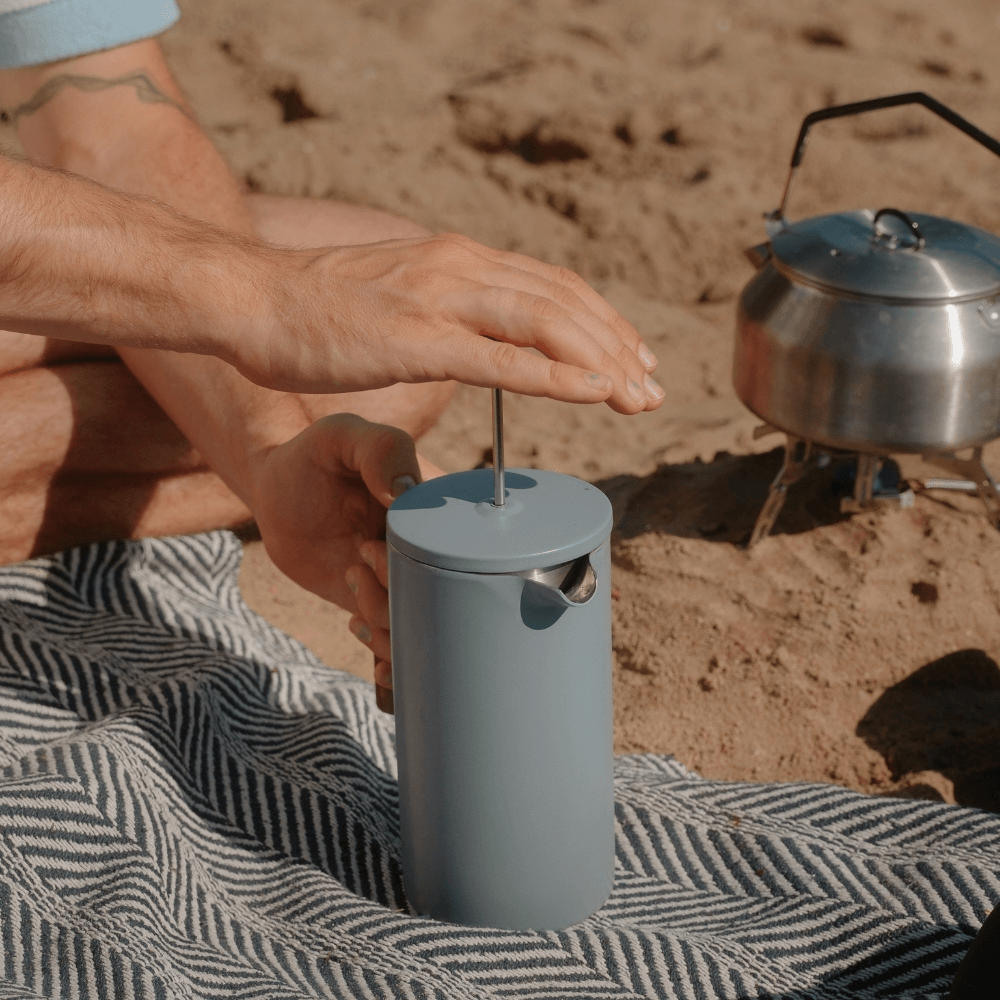 Die Caldera ist mehr als nur eine French Press. Sie ist für alle gemacht, die beim Campen, im Van oder beim Frühstück im Zelt nicht auf guten Kaffee verzichten wollen. Und sie ist aus Edelstahl – robust, isolierend und wie gemacht für das Leben draußen. Wer draußen Kaffee zubereiten will, sucht nach etwas, das unkompliziert funktioniert, keine zusätzlichen Filter braucht und den Kaffee möglichst lange heiß hält. Genau das liefert die Caldera – und noch mehr.
