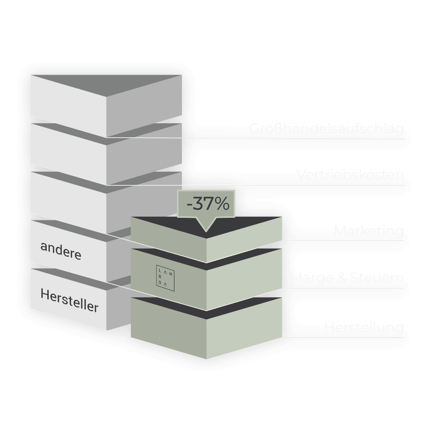 - Im Vergleich zur klassischen Handelskette sind wir bis zu 37 % schlanker kalkuliert.